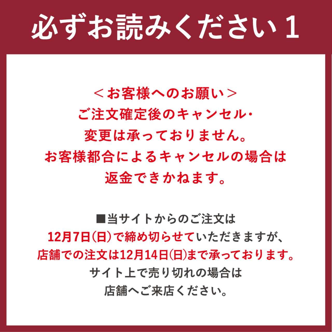 ●ご注文完了後のキャンセル・変更は承っておりません。